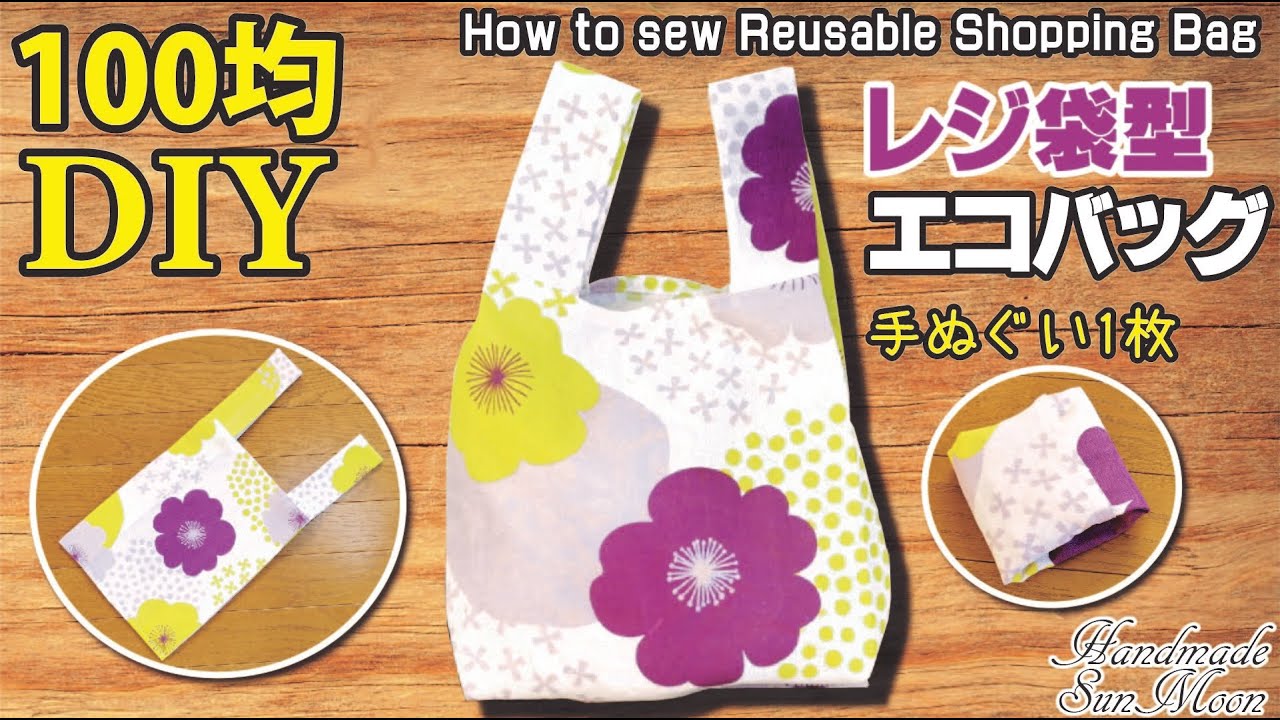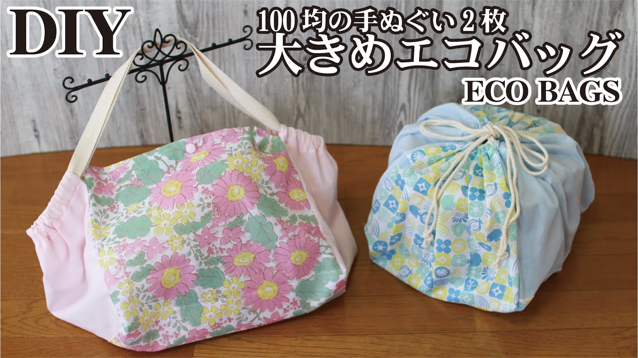 手ぬぐい一枚で作れるレジ袋型のエコバッグの作り方です。