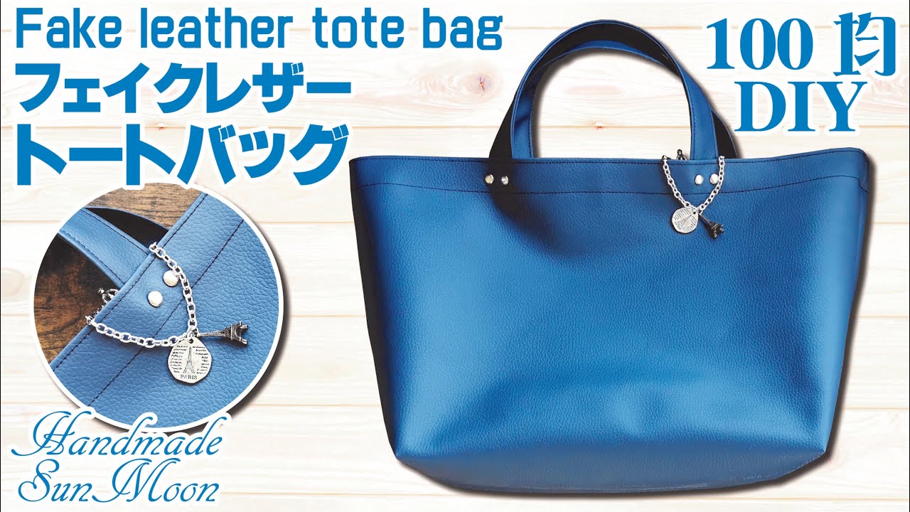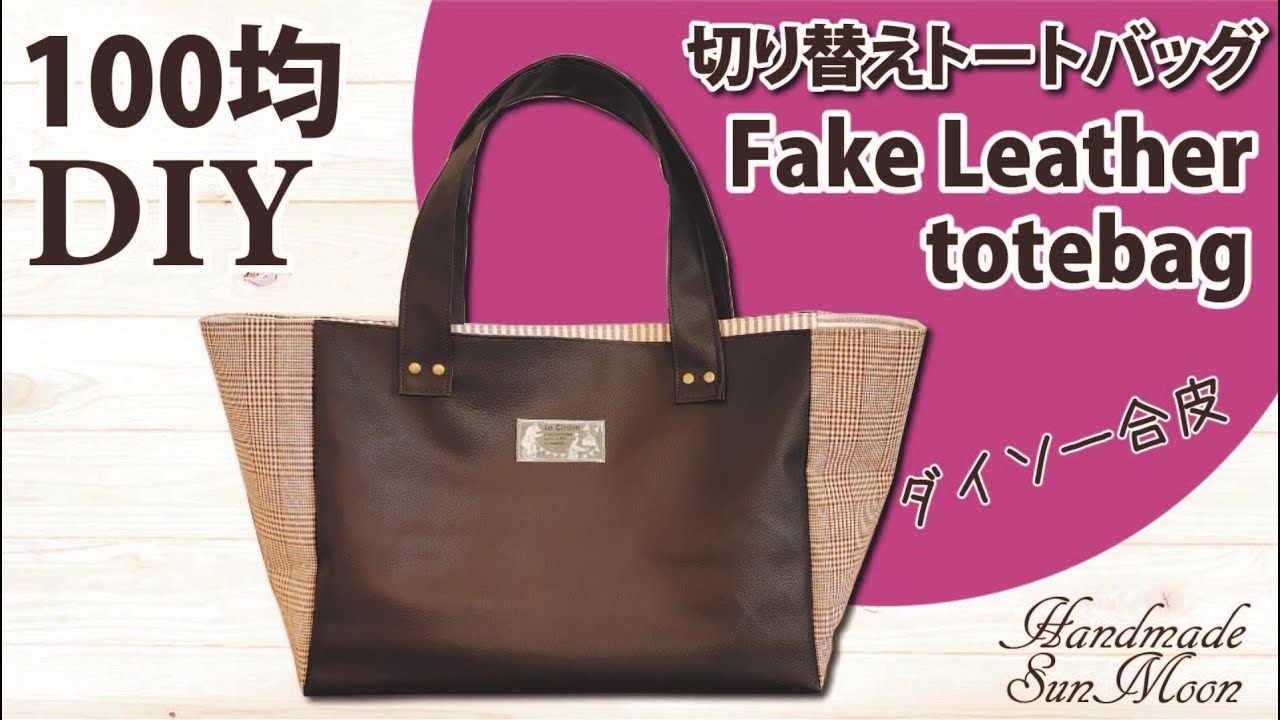 DAISOの合皮はぎれ1本で作れるトートバッグの作り方です。