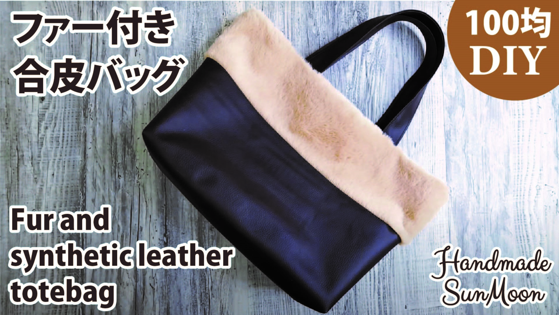 DAISOの合皮はぎれとフェイクファーで作るトートバッグの作り方です。