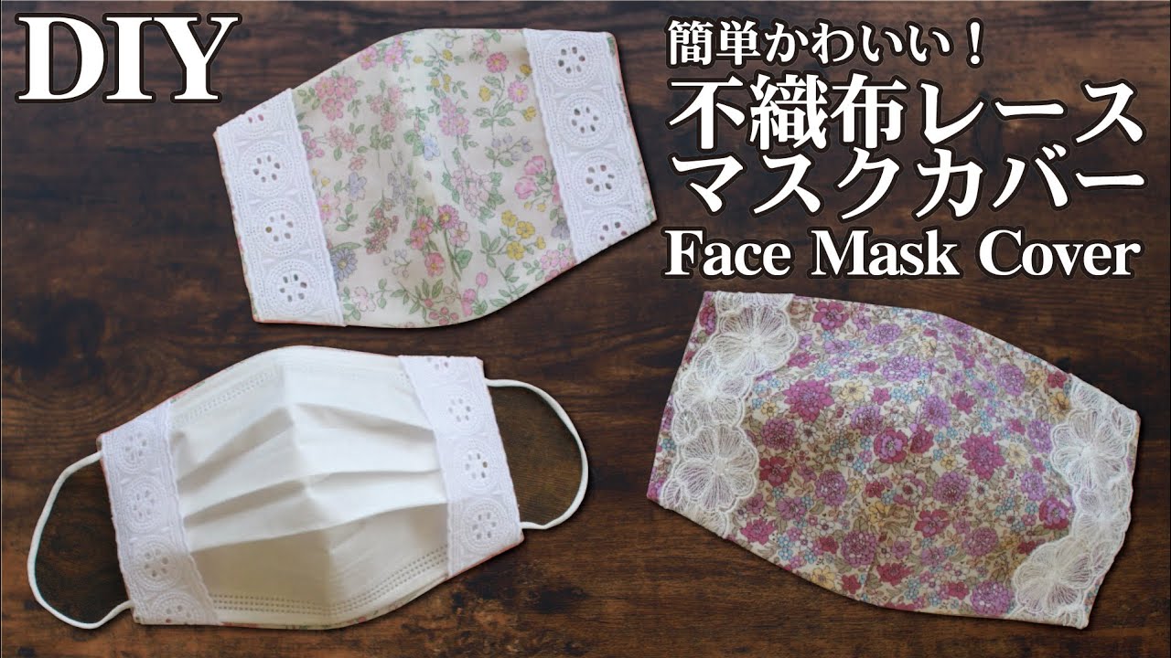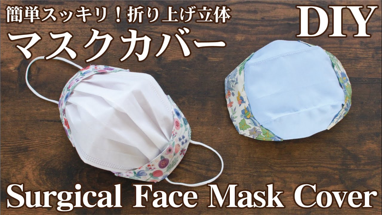不織布マスクが見えるマスクカバーの作り方です。手持ちのマスクから簡単に型紙を作る方法を紹介しています。