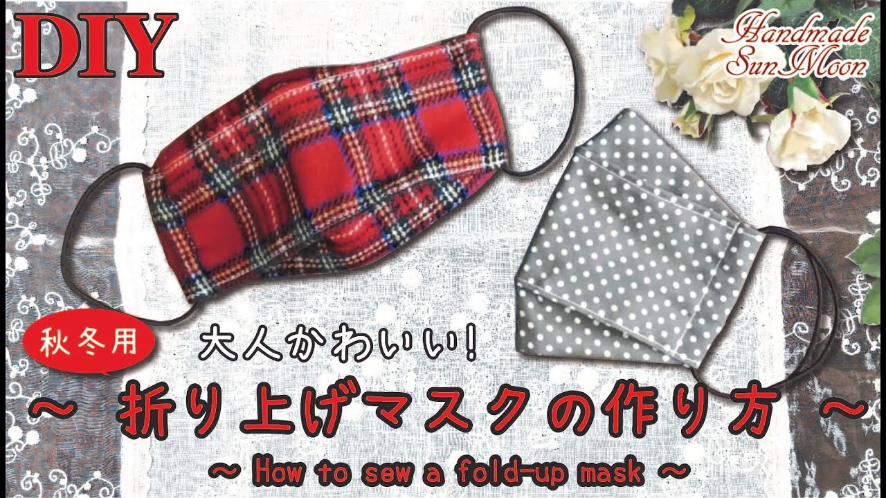 秋冬用ウールの折り上げマスクの作り方です。
