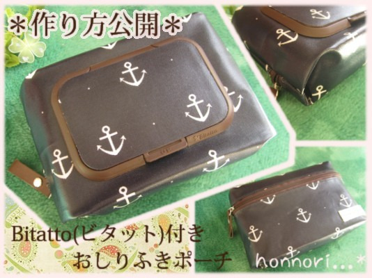 おしりふきがさっと取り出せるおむつポーチ(Bitatto付き)の作り方が紹介されています。